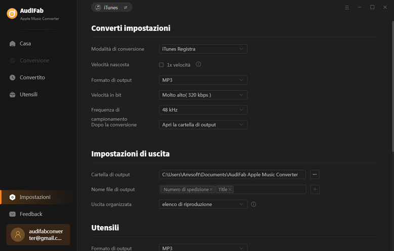 AudiFab Apple Music Converter è compatibile con Windows 7, 8, 10, 11 e macOS 11 - 26. È uno strumento eccezionale, utilizzato per convertire brani musicali, podcast e audiolibri di Apple Music in formato MP3/AAC/WAV/FLAC/AIFF/ALAC. Inoltre, AudiFab Apple Music to MP3 Converter può anche convertire i tuoi file audio locali in formato MP3/M4A/FLAC/WAV/OGG/AIFF, masterizzare musica su CD e modificare i tag ID3. Conserva la qualità audio originale e i tag ID3 dopo la conversione. Inoltre, puoi scegliere come desideri denominare e ordinare i file convertiti.
